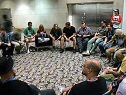 To begin, a Moderator distributes cards [or slips of paper] face down to each member of the group – either a villager or a werewolf. There are generally 2 werewolves, but in a larger group there may be 3 of them.